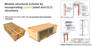 Production drawings for timber frame, mass timber and metal elements in a 3D environment based on "digital twin" methodology.